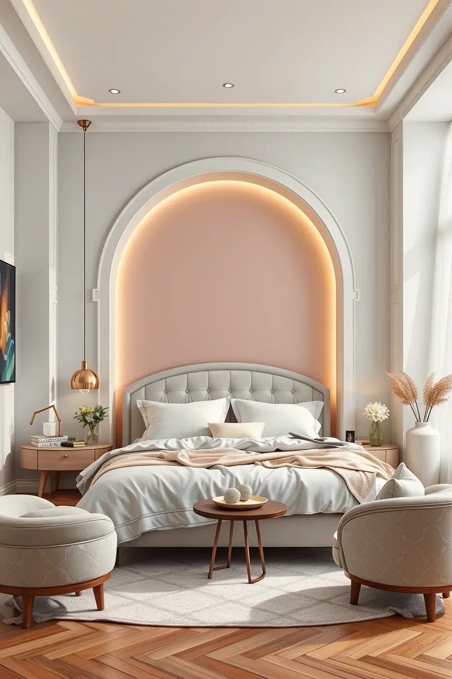 Geometric shapes and patterns are strong design elements that add order and rhythm to bedroom interior ideas. I apply geometric accents to spaces through wall art, textiles, or furniture to make them modern and visually interesting. It is all about balance-combining angular features with soft contexts in order to prevent coldness.