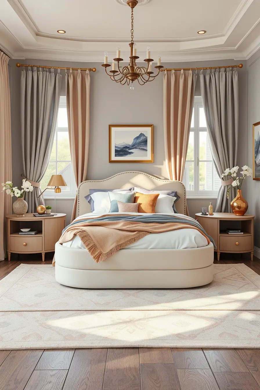 To make the appearance even more appealing, I would add recessed lighting on the accent walls that are geometric, which would bring out the patterns and also give the room depth.