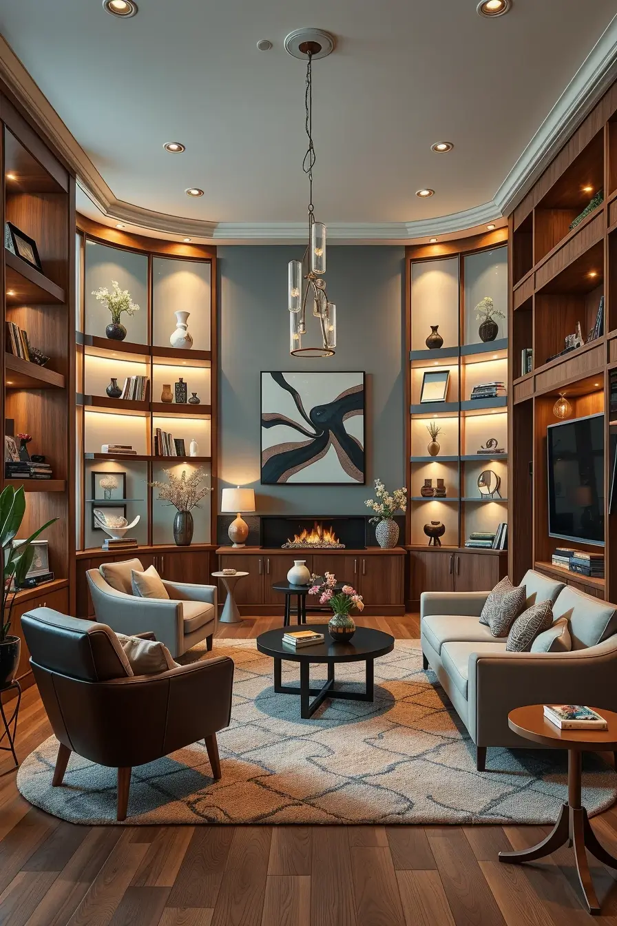 In a smart, hyper-functional way, a small living room can be made visually appealing as well. You can save the floor area by opting for the sleek and compact type of loveseats and wall-mounted shelves. The artful placement of mirrors can make a smaller area look like a bigger one. Apply neutral color tones by separately combining them with the bright hands of throw pillows or rugs will pronounce for the viewer the extent of the place while also create the feeling of coziness.