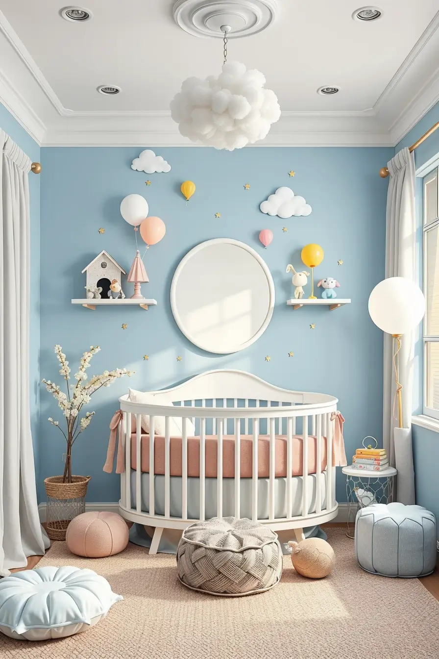 A multifunctional kids’ room combines sleep, play, and study areas in a compact layout. Use bunk beds with built-in desks or storage drawers to maximize vertical space. Create a playful atmosphere with colorful rugs and wall decals while keeping the overall design streamlined. Modular furniture ensures the room adapts as your child grows.