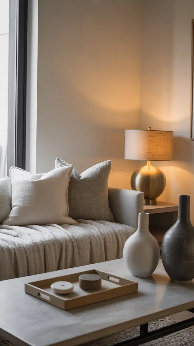 The combination of mixed metals with natural finishes adds a luxurious touch to your coastal living room decor, while respectfully referencing the natural beauty of the beach. This style merges refined metals and smooth trim with wood and stone, which is both contemporary and rustic. The overall ambiance is welcoming and polished.