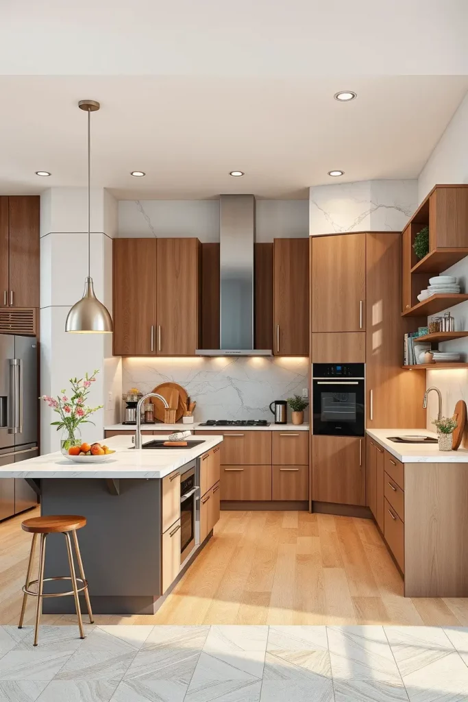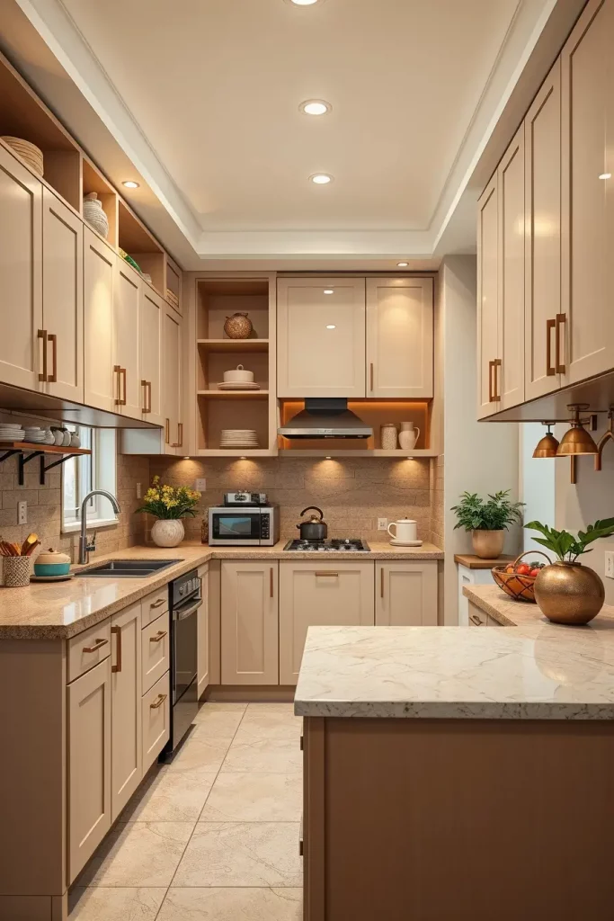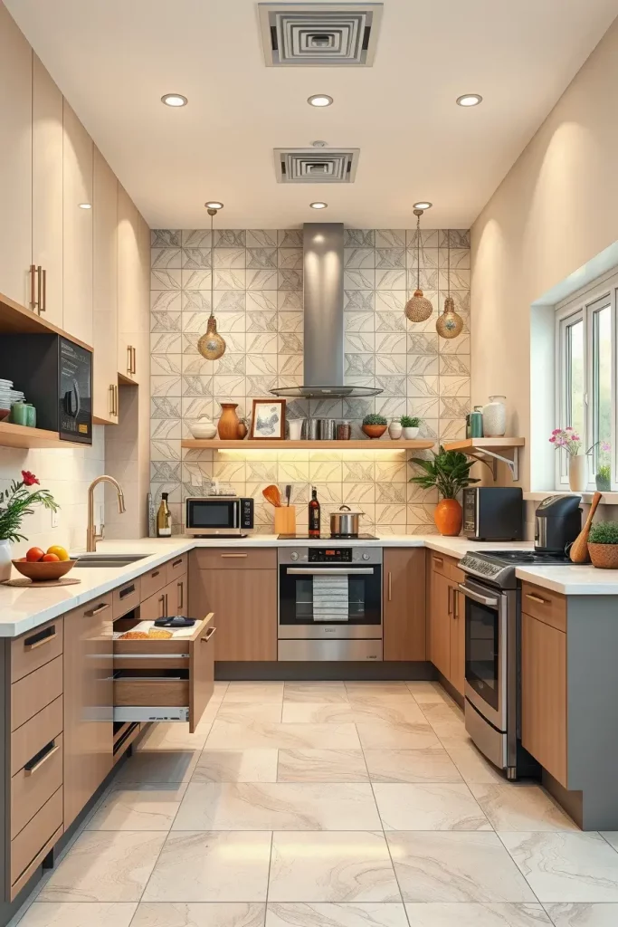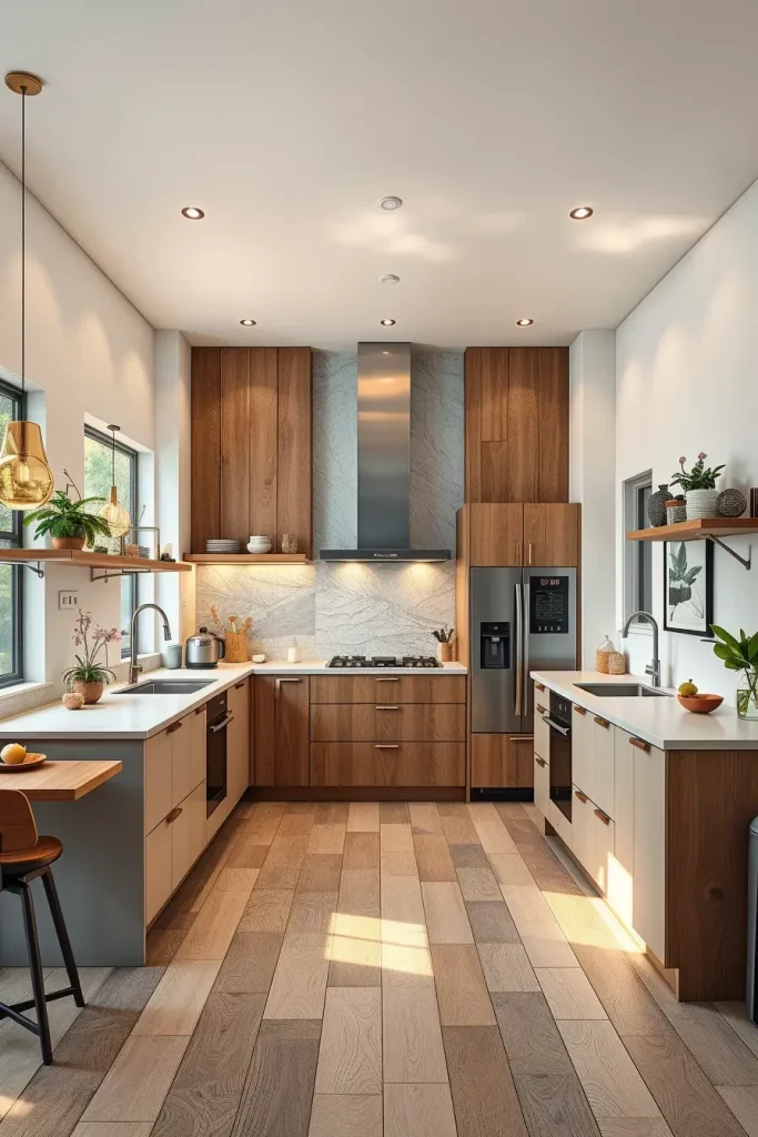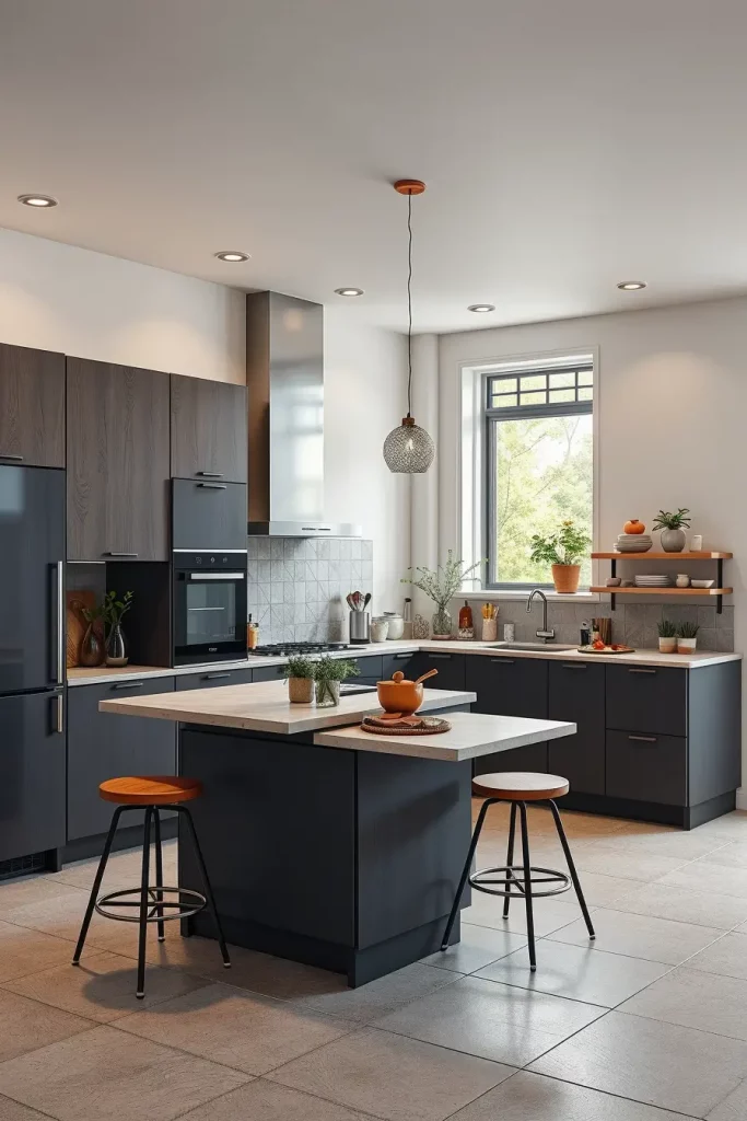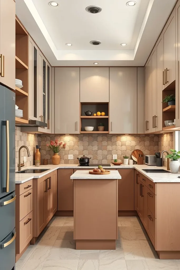 In such kitchens, ready-made cabinetry, open shelves, and laminated countertops which can be textured like natural stones are frequently used by me. A combination of matte finishes and small metallic hardware creates the impression of sophistication. A neutral base with bold accents e.g., navy, forest green or deep terracotta is personalized. In even the smaller houses, open layouts with central islands can allow functionality and flow to be maintained.