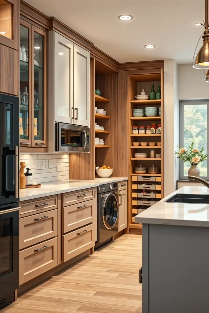 I usually add a toe-kick drawer, divider vertically and end-carousel units to ensure functionality. Inbuilt appliance garages and hidden shelves assist in ensuring clean counters. Bespoke cabinets that match the cooking preferences of the homeowner will make sure that there is no wastage of space.
