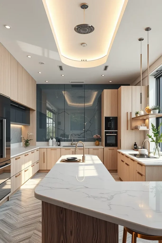 Such sustainable materials like bamboo, recycled quartz, and eco-friendly cabinetry are some of the materials I often suggest to incorporate in planning a 2026 kitchen. Multipurpose islands serve as the dining tables too, and the storage is hidden so that it can be clutter free. Continuous LED lights emphasize the textures and areas of the space and provide depth and aura.