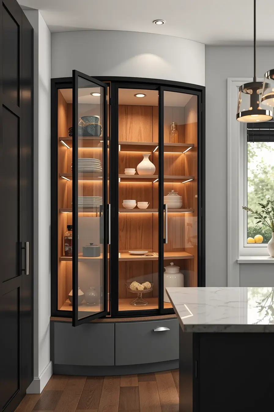 I would introduce diffused lighting using smart systems to make emphasis on these smooth geometry of these slick shapes without overwhelming the design.